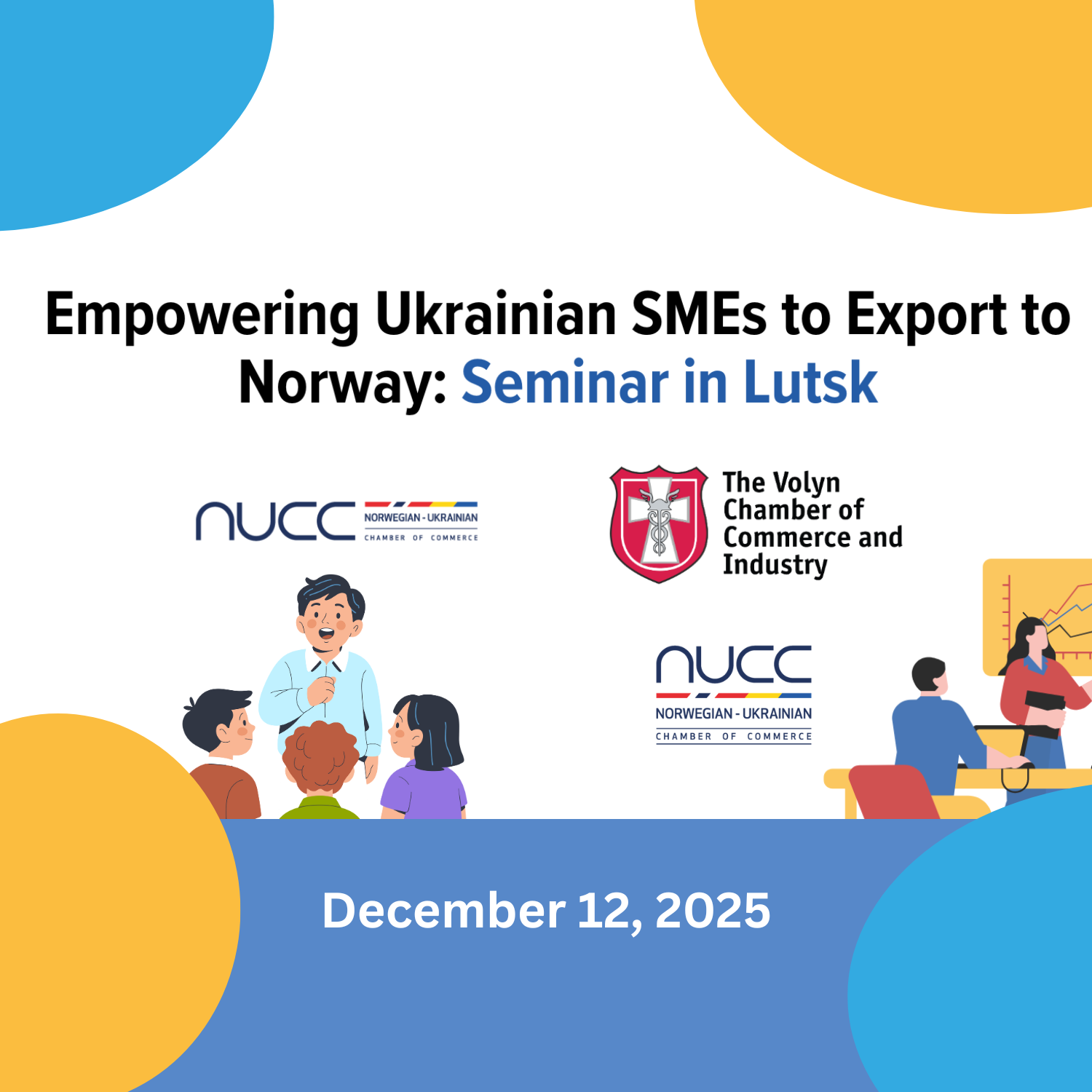 The Norwegian-Ukrainian Chamber of Commerce (NUCC) together with the Volyn Chamber of Commerce and Industry invites Ukrainian entrepreneurs, exporters, and representatives of small and medium-sized businesses who are looking to expand their international presence and enter the Nordic markets to join a practical seminar dedicated to entering the Norwegian market.